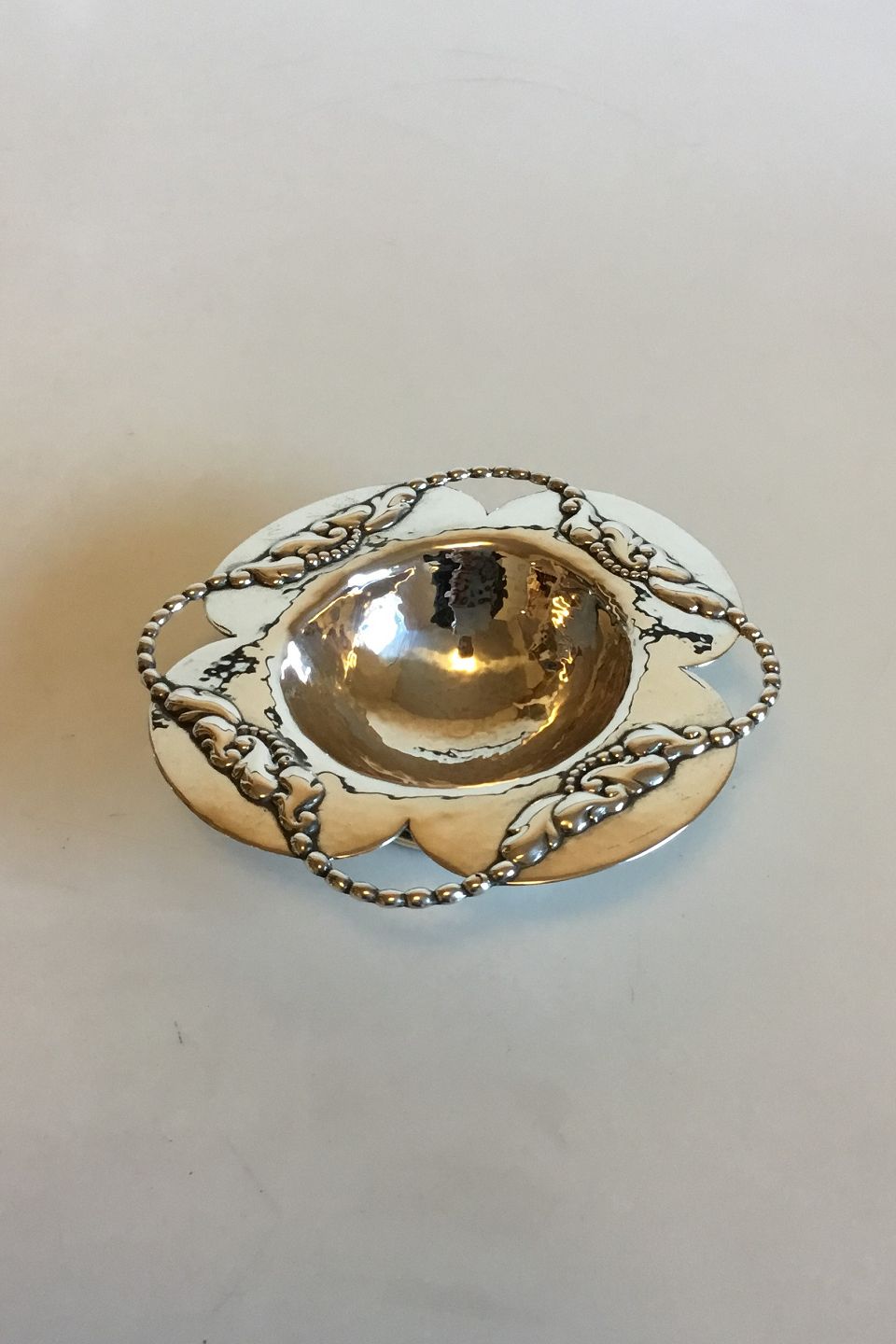 Evald Nielsen Sølv 830 Lille skål med bred ornamenteret kant
