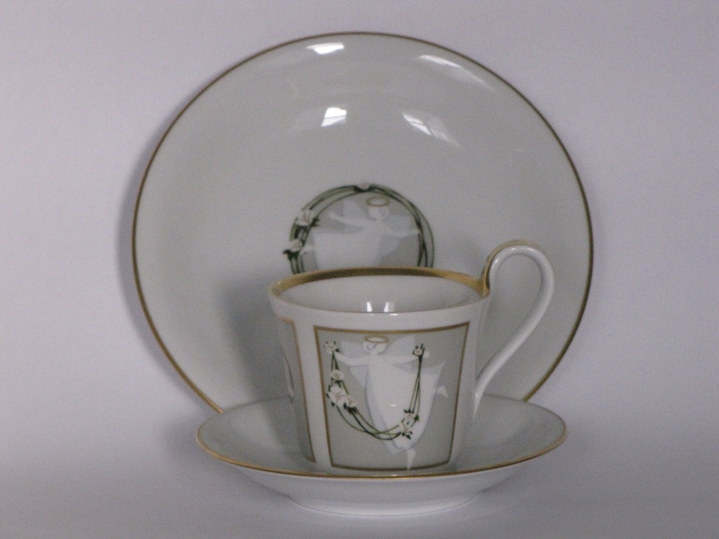 Description: Weihnacht Tasse mit hohem Henkel und Unterteller sowie teller von Royal Copenhagen. Design Jette Fröhlich 2006. 1. Wahl. Der Preis gilt für alle 3 Teile.