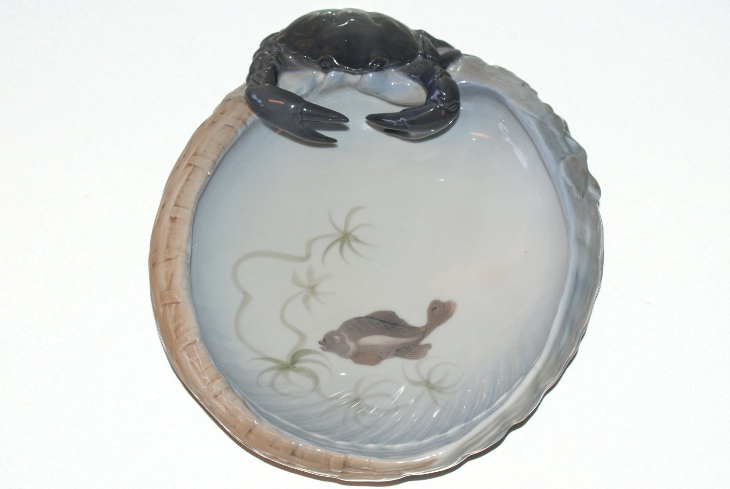 Beskrivelse: Stort Kongeligt Askebæger med Krabbe og Fisk,