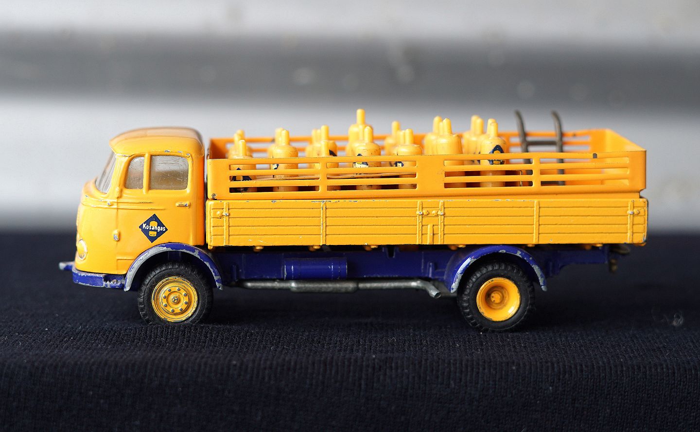 Beskrivelse: Kosan gas lastbil med 28 Kosan gasflasker og sækkevogn