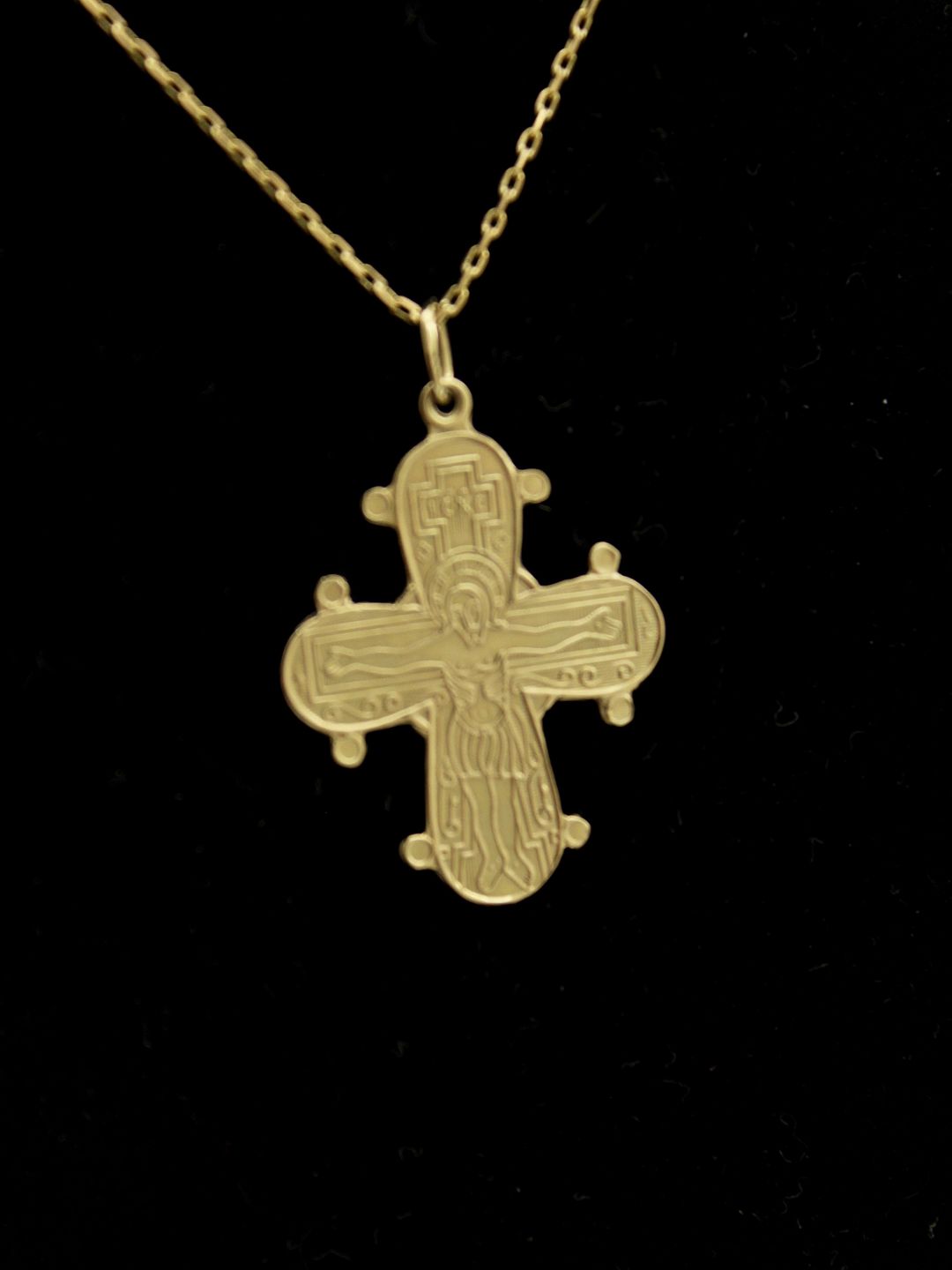 : 18 karat guld halskæde 40 cm. med Dagmar kors 3 x 2,2 cm.