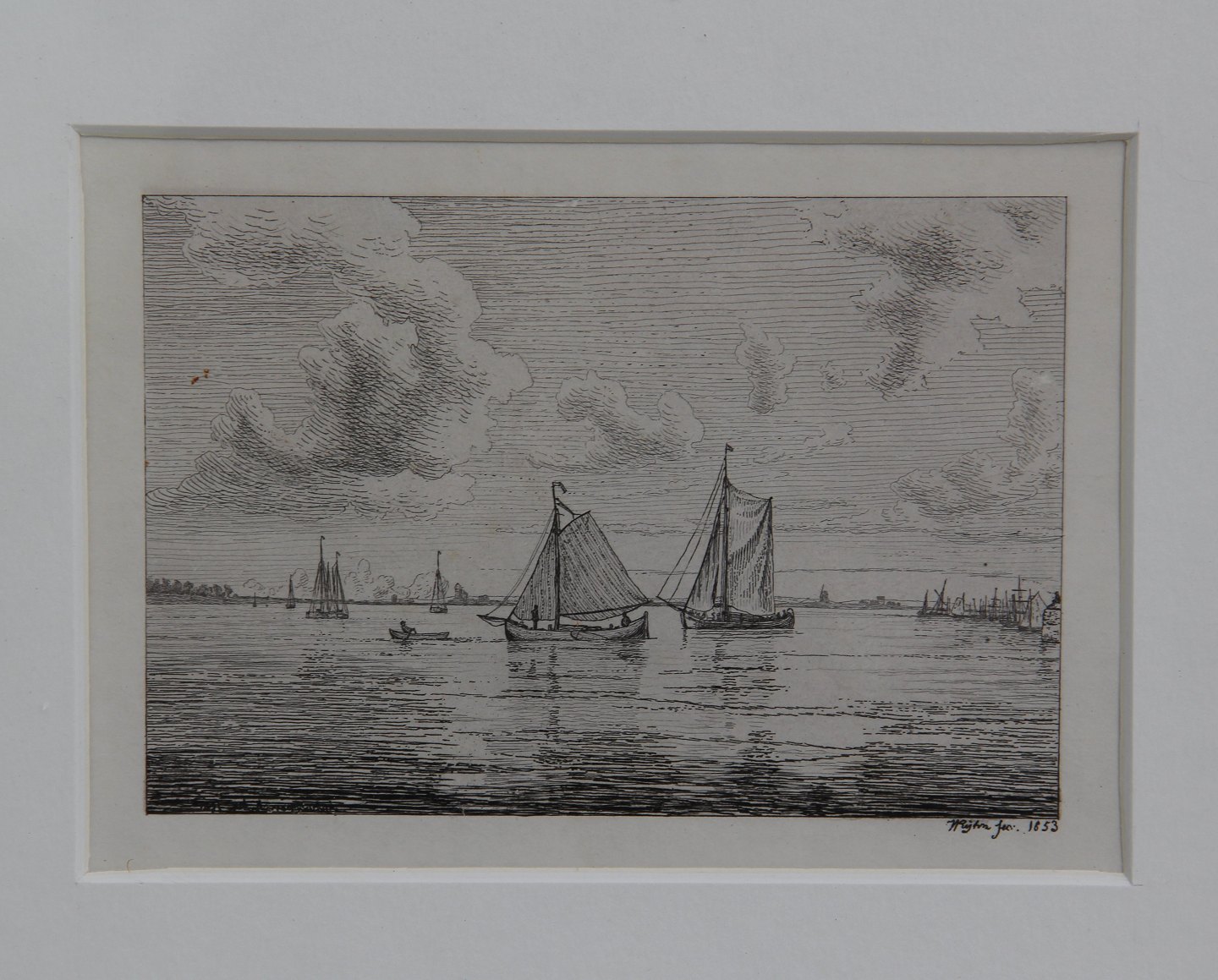 Etching : Wilhelm Kyhn 1853 Marine - sailship 25 x 29.5 cm including Golden Frame _ Wilhelm Kyhn (1819-1903)