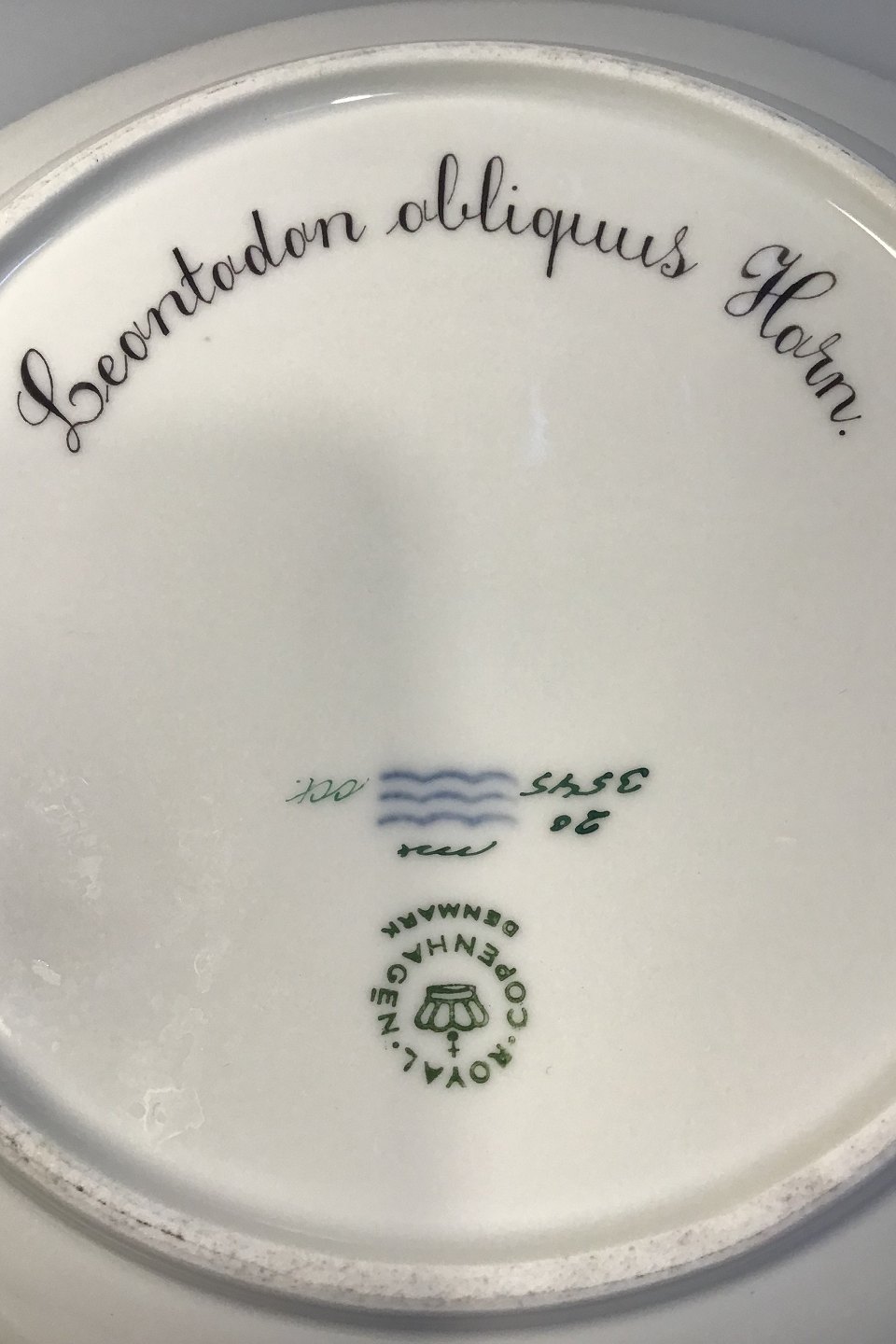 Beskrivelse: Royal Copenhagen Flora Danica Dyb Tallerken No 20/3545 Latinsk Navn Leontodon obliquus Horn (Mælkebøtte) Måler 25 cm (Fremstår med reparation)
