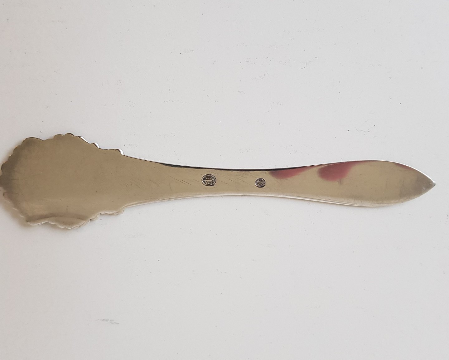 Description: Silver letter knife decorated with enamel Randers city arms.