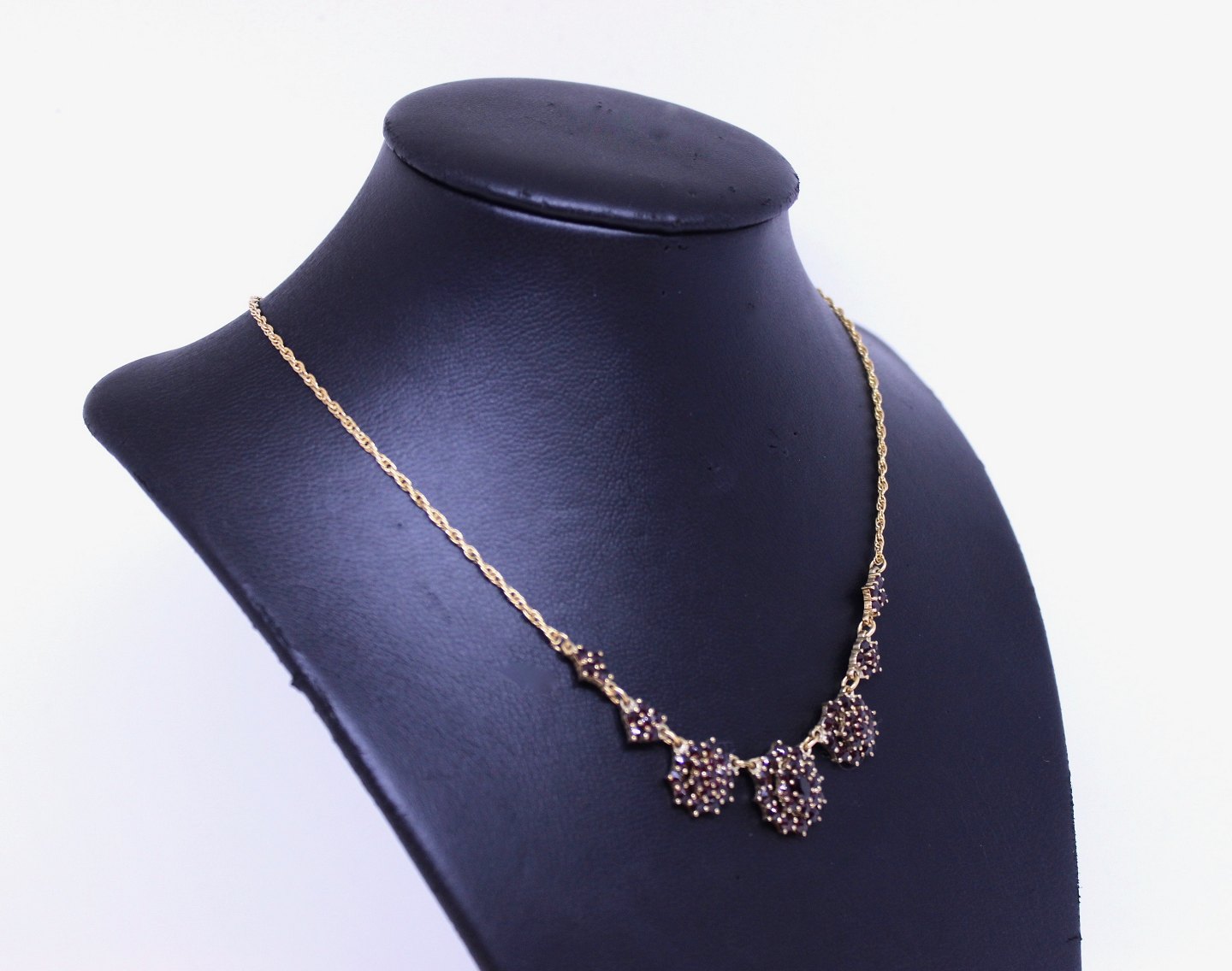 Description: Necklace of gilded 830 silver and with pendant decorated with garnets.