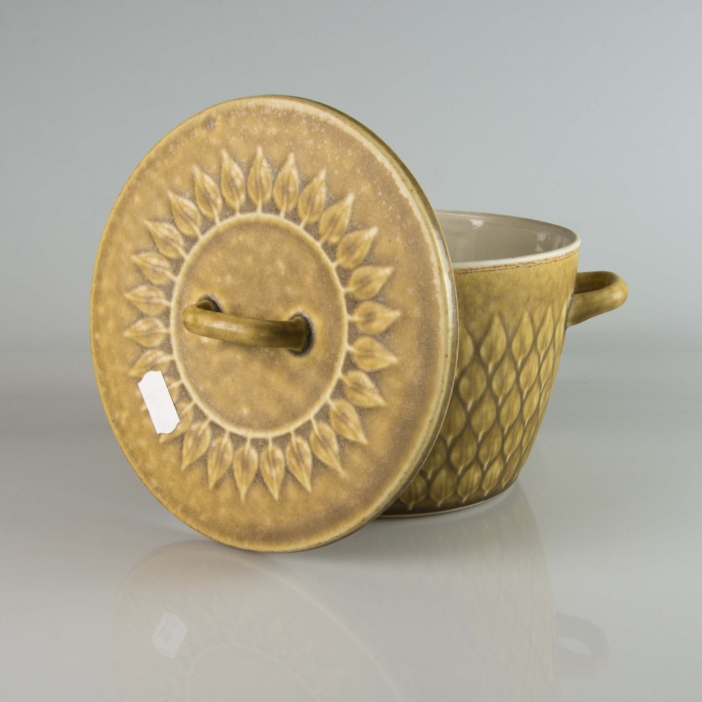Beskrivelse: Terrin i stentøj med håndtag fra stellet Relief