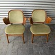 Beskrivelse: Et sæt armstole i teaktræ betrukket med flaskegrønt velour