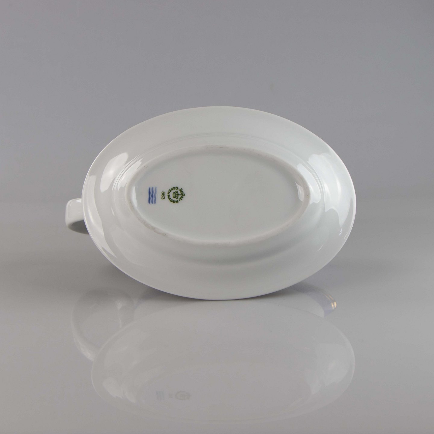 Beskrivelse: Saucekande i porcelæn fra stellet Lyseblå magnolia nr. 563