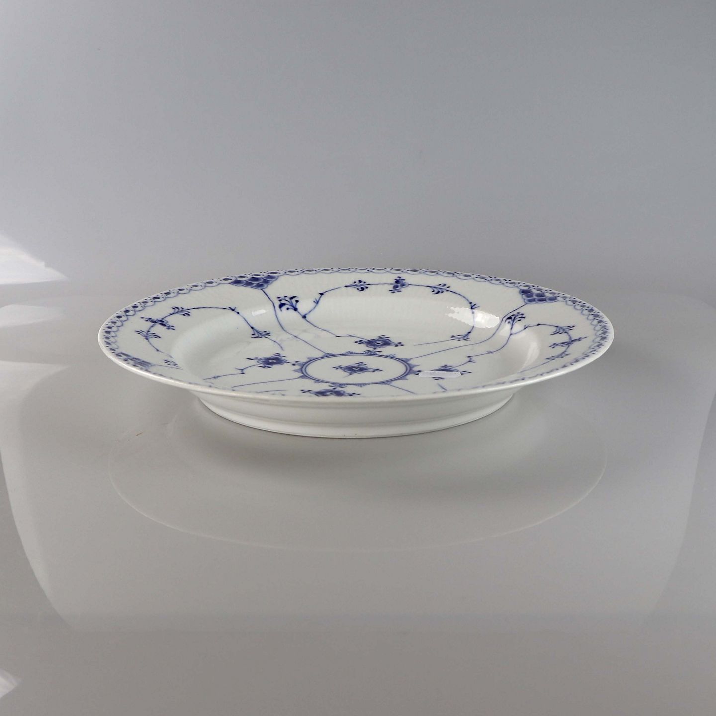 Beskrivelse: Rundt fad i porcelæn i serien musselmalet halvblonde nr. 1/538