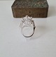 Beskrivelse: Cocktail ring i sterlingsølv med stor pear slebet klar sten flankeret af to mindre baguette slebne klare sten.