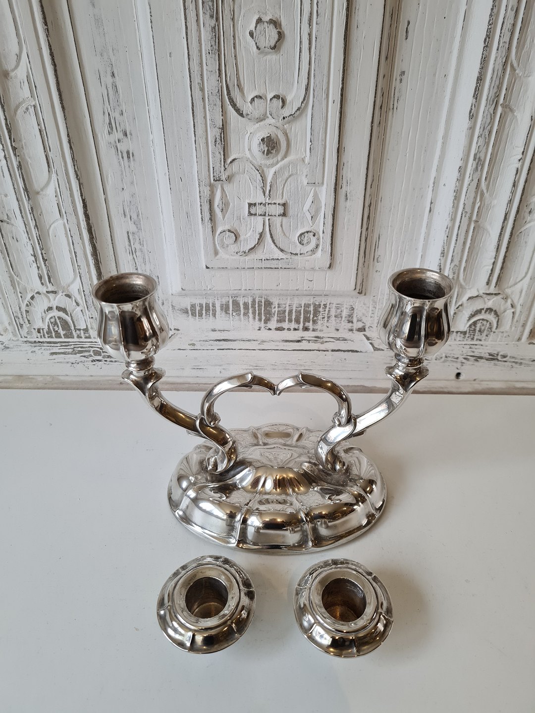 Toarmet lysestage af sølv, produceret i 1929 af Hugo Grün