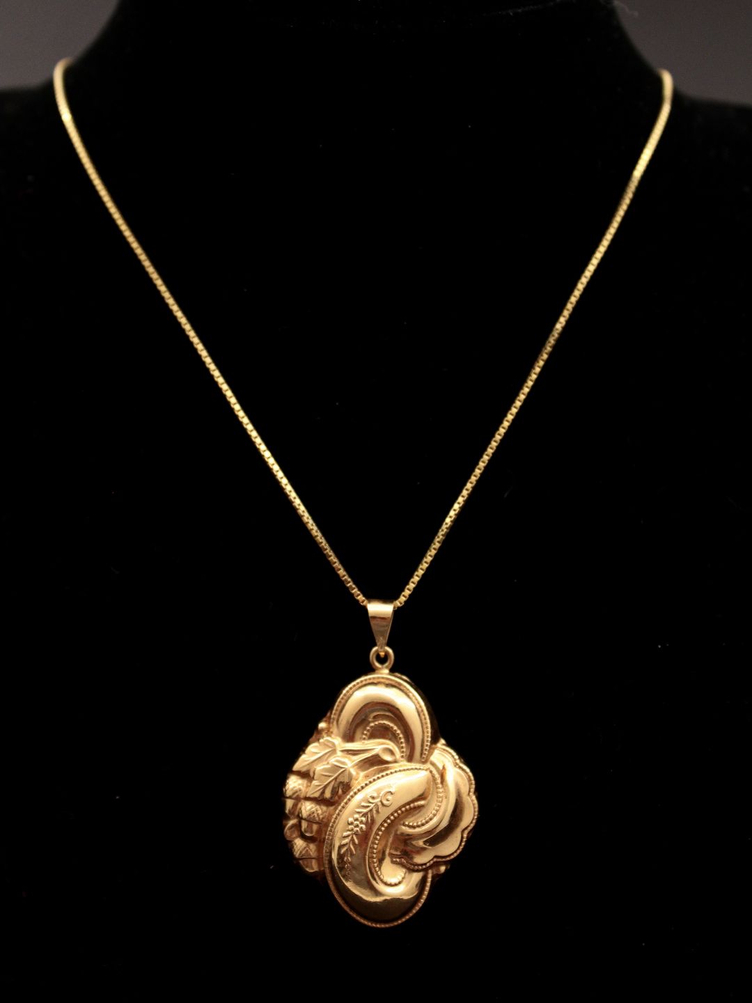 : 14 karat guld halskæde og vedhæng 2,7 x 3,9 cm. stemplet 585 BH for B.Hertz emne nr. 465561