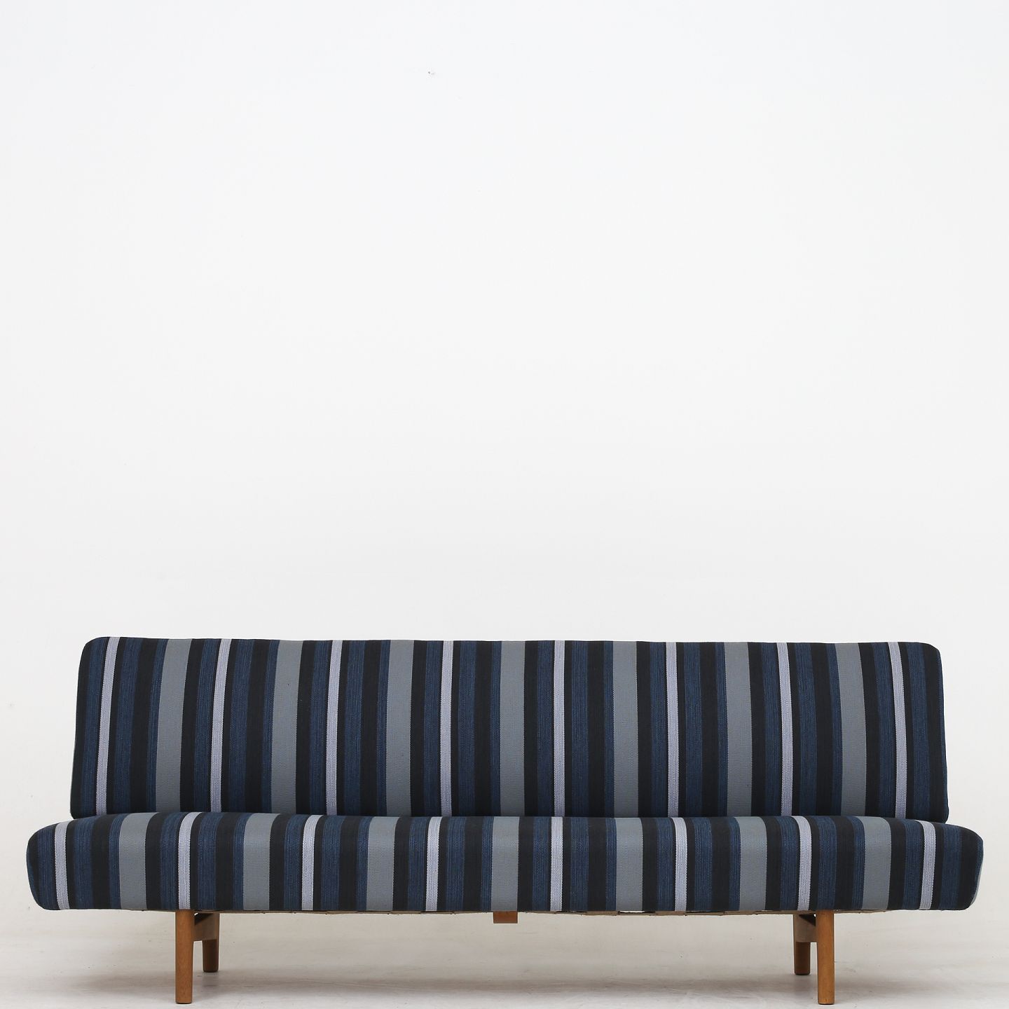Sjælden sofa med ben af patineret egetræ, nybetrukket i tekstil (DAW, farve Stripe 7)