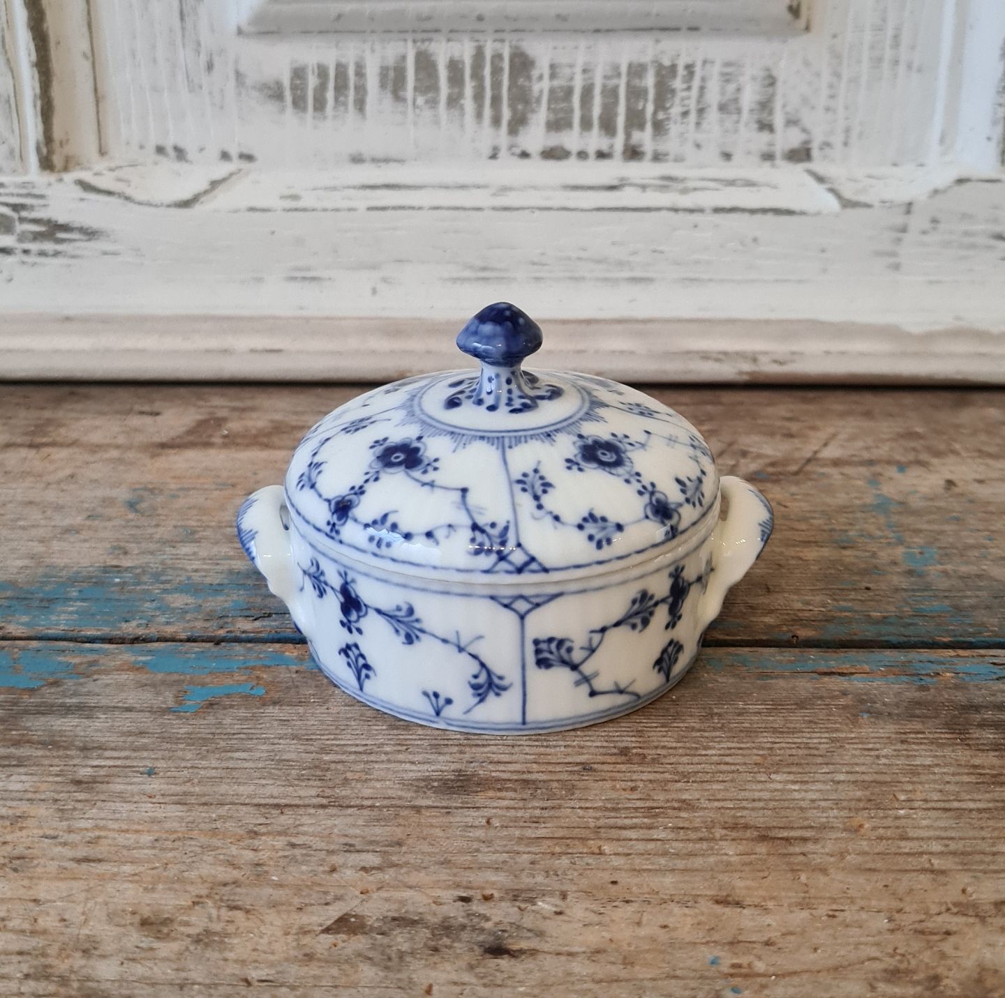 Beskrivelse: Royal Copenhagen Musselmalet riflet smørskål