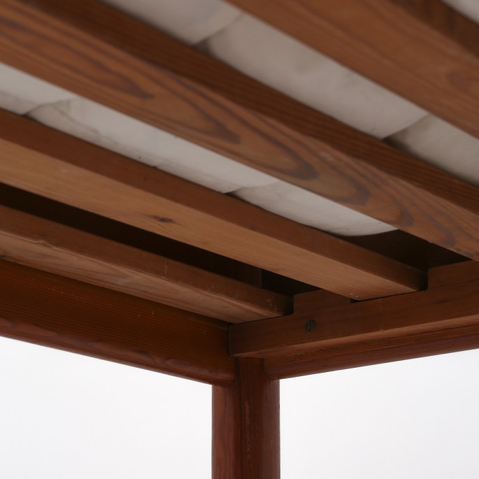 Barneseng/køjeseng i massiv, patineret Oregon pine fra 1935.