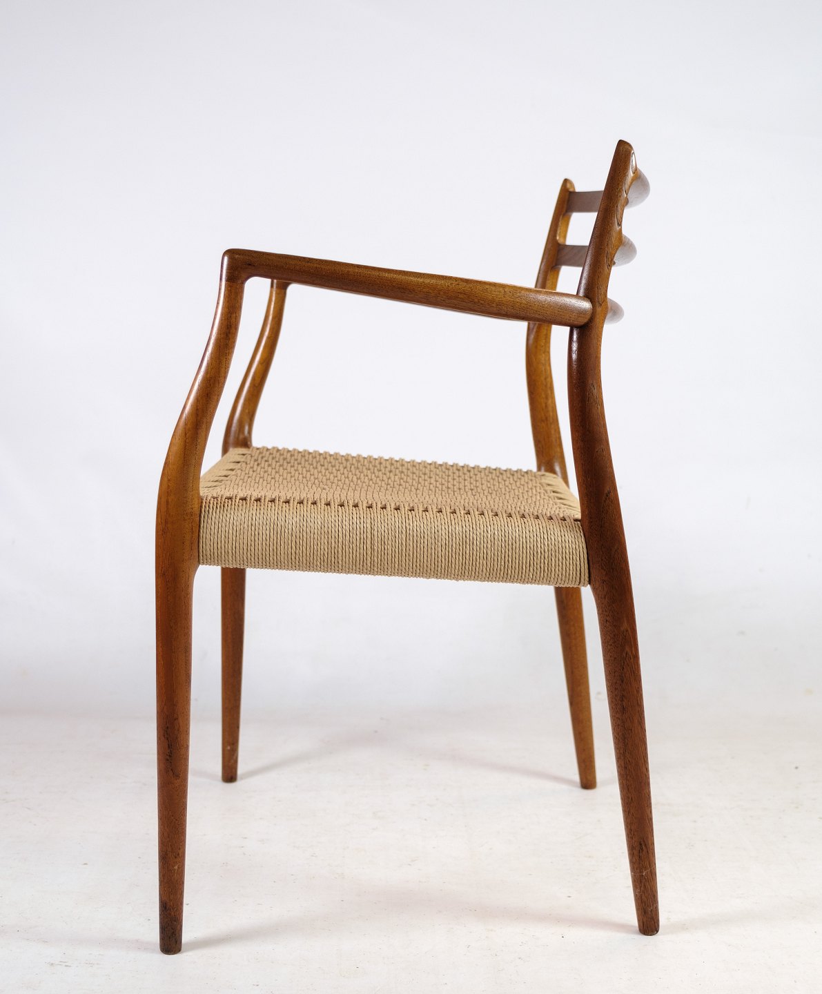 Disse armstole er et sjældent og smukt eksempel på det ikoniske design af N.O. Møller og er en investering i et klassisk og tidløst stykke dansk design. De vil tilføje stil og elegance til enhver stueindretning og vil blive nydt i mange år fremover.