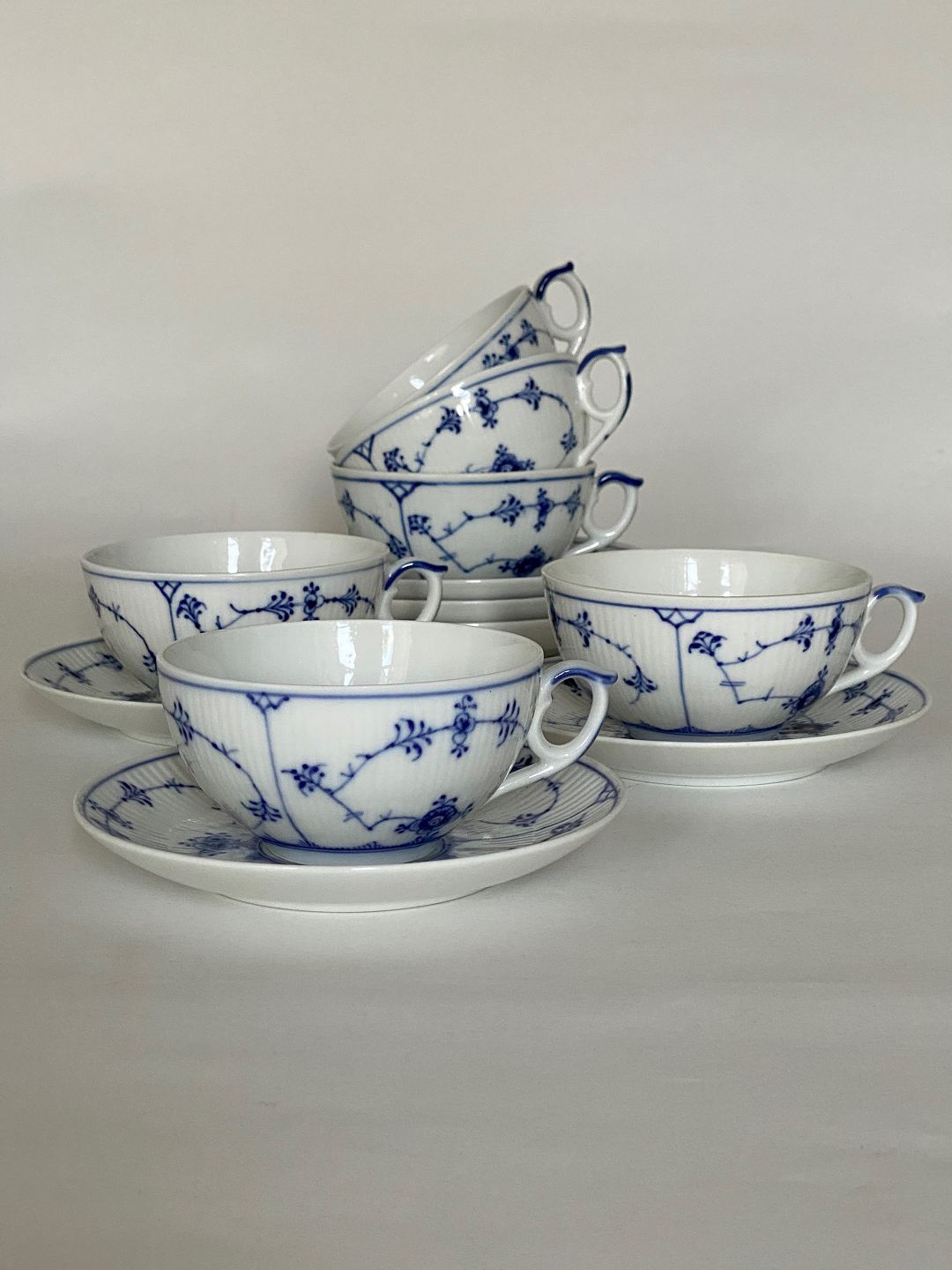 Description: Blue Fluted Plain big tea cup and saucer from Royal Copenhagen. Number 1/315. Height 5 cm. Diameter 10,3 cm. 1. sorting.