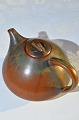 Beskrivelse: Saxbo keramik, Eva Stæhr-Nielsen kugleformet tekande med glasur i rødbrune og grønlige nuancer, højde ved hank 10,5cm. bredde 19 cm. fra tud med hank. rummål 90.0cl. Fremstillet hos Saxbo, Signeret E St.N. 33, Denmark. Pæn hel stand.