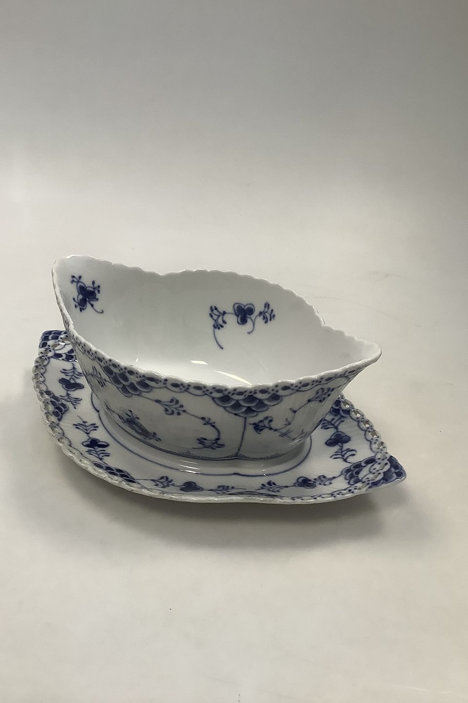 Description: Royal Copenhagen Blue Fluted Full Lace Sauceboat with attached underplate No 1105. 24 cm (9 29/64")