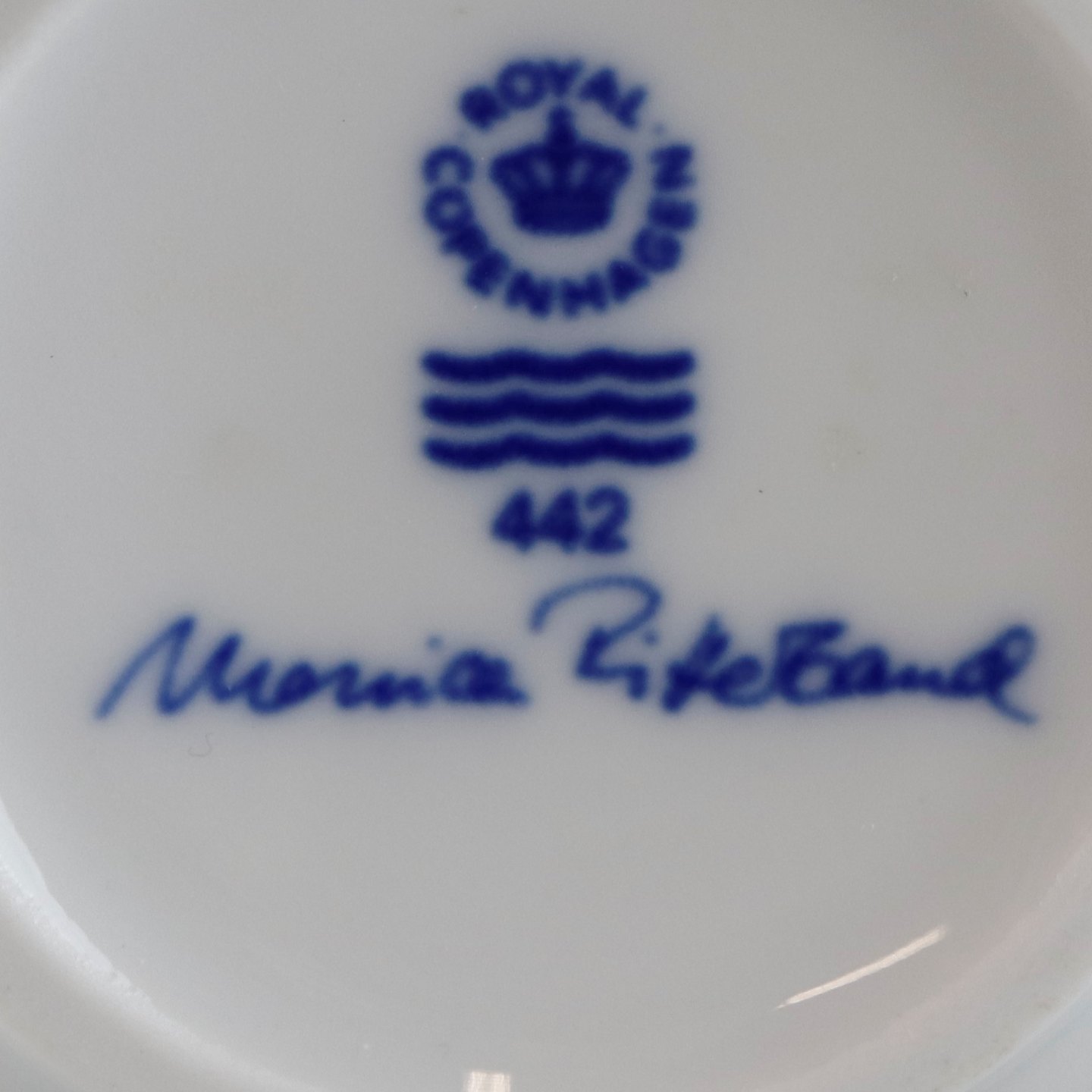 Beskrivelse: Hvid porcelæn kande med blå noder på