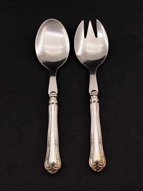 Beskrivelse: Herregaard salat sæt 21 cm. sølv og stål emne nr. 527603