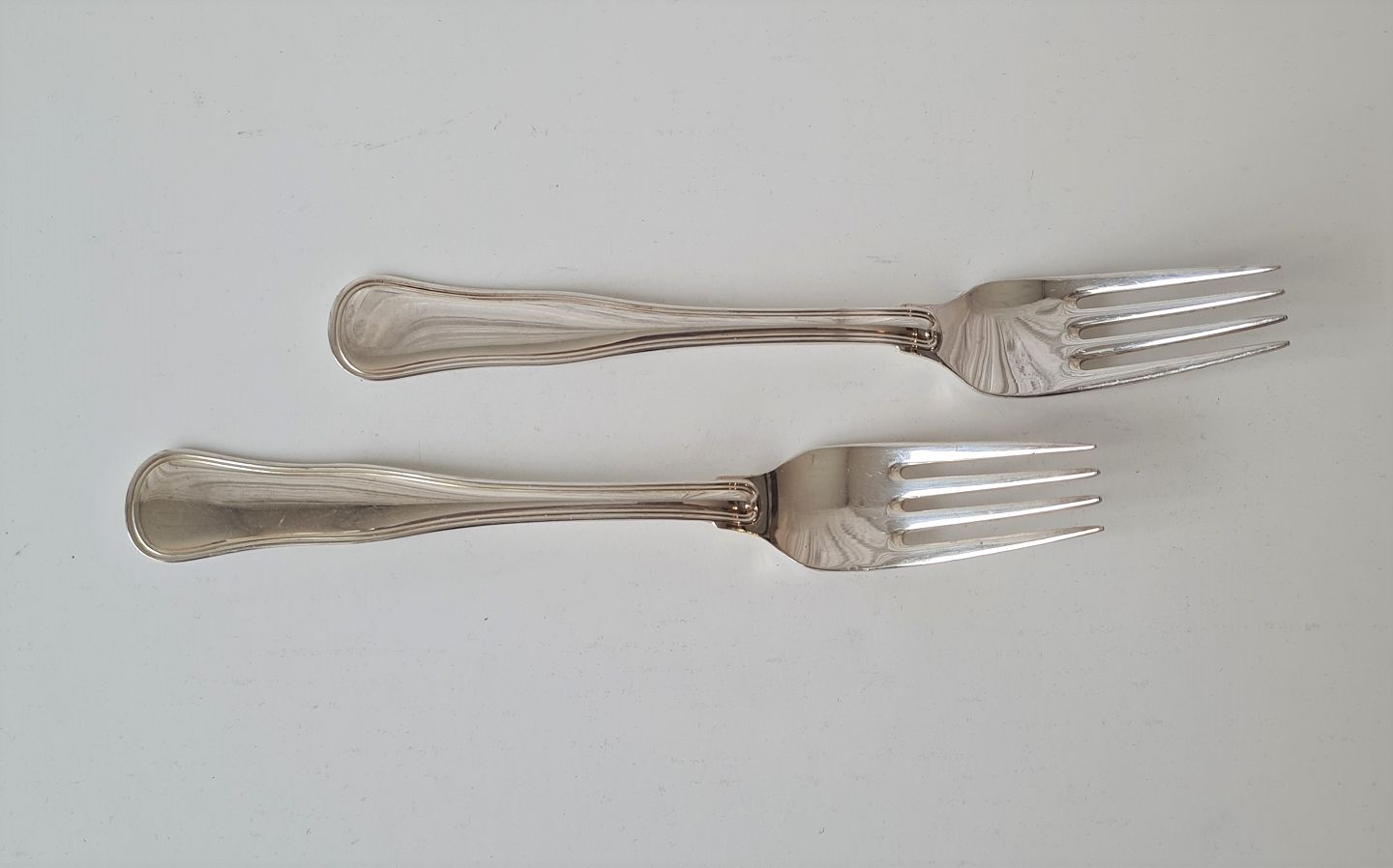 Beskrivelse: Cohr Dobbelt riflet middagsgaffel i sølv