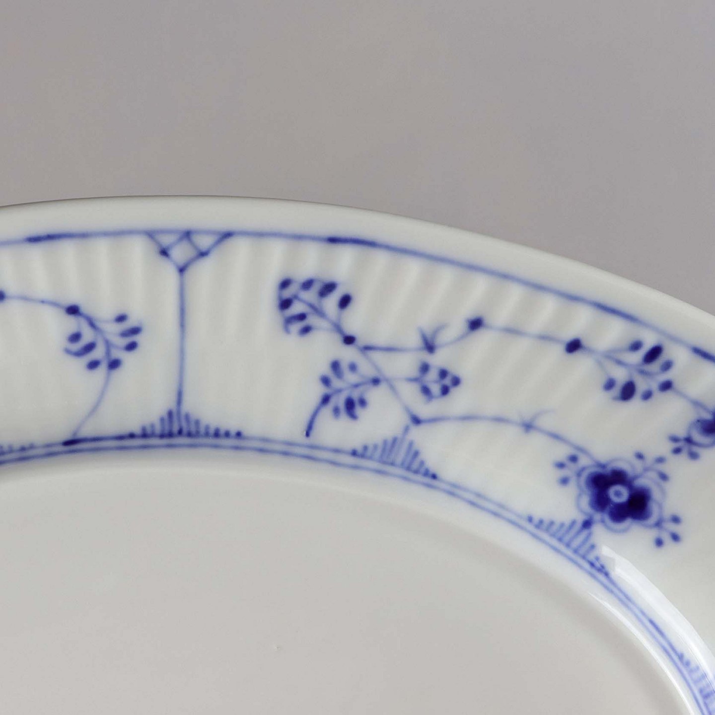 Fad i riflet hvidt porcelæn med dekoration af blå ranker