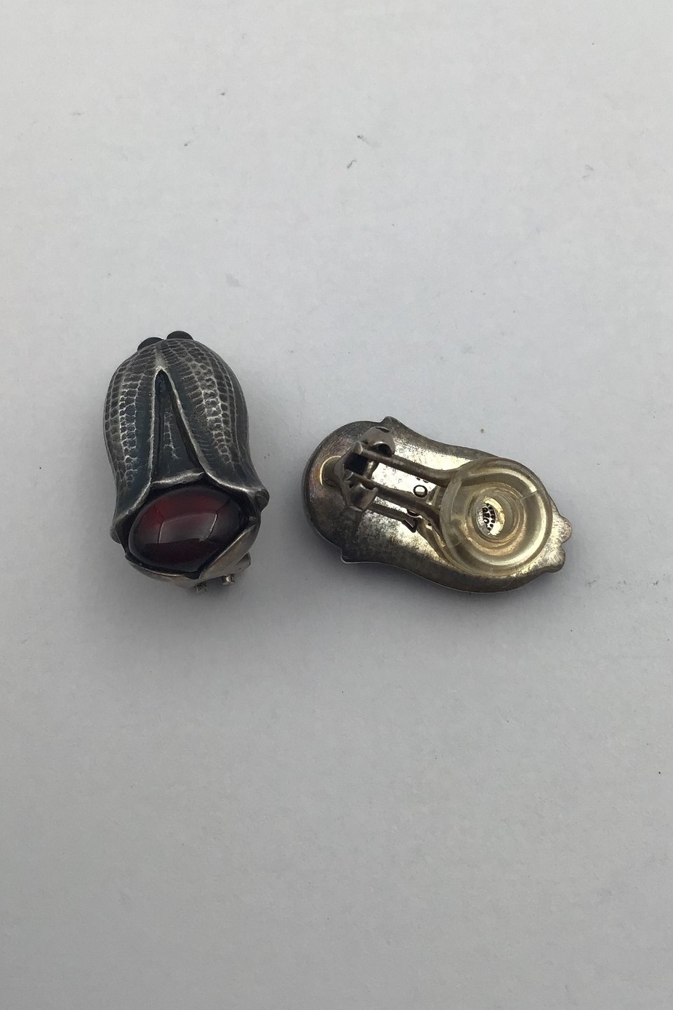 Description: Georg Jensen Sterling Silver Annual Earrings (clips) 2007 (Carnelian) Measures 2 cm (0.78 inch) Combined Weight 10.3 gr (0.36 oz)