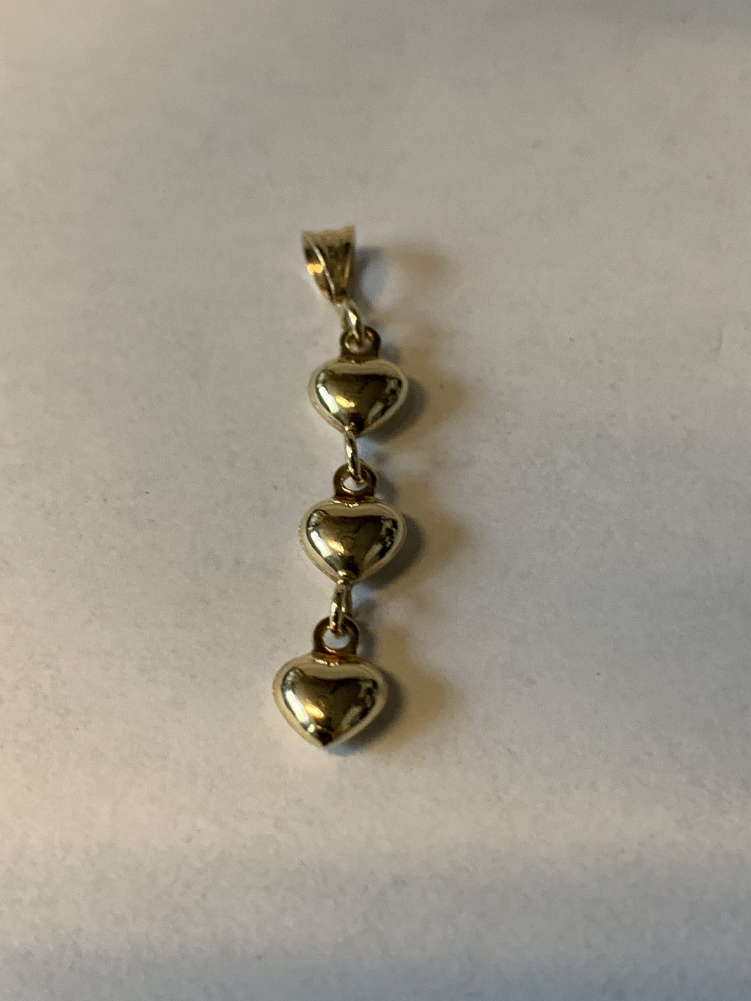 Vedhæng med tre guldhjerter i 14 karat guld, stemplet 585