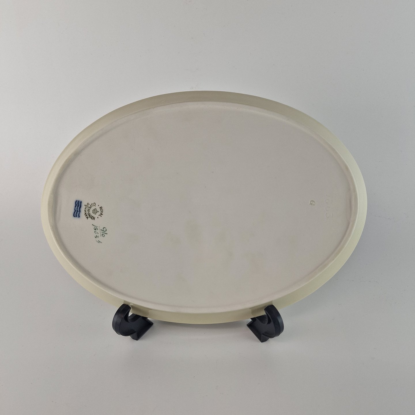Beskrivelse: Ovalt fad eller bakke fra stellet Frijsenborg. No 910/1863