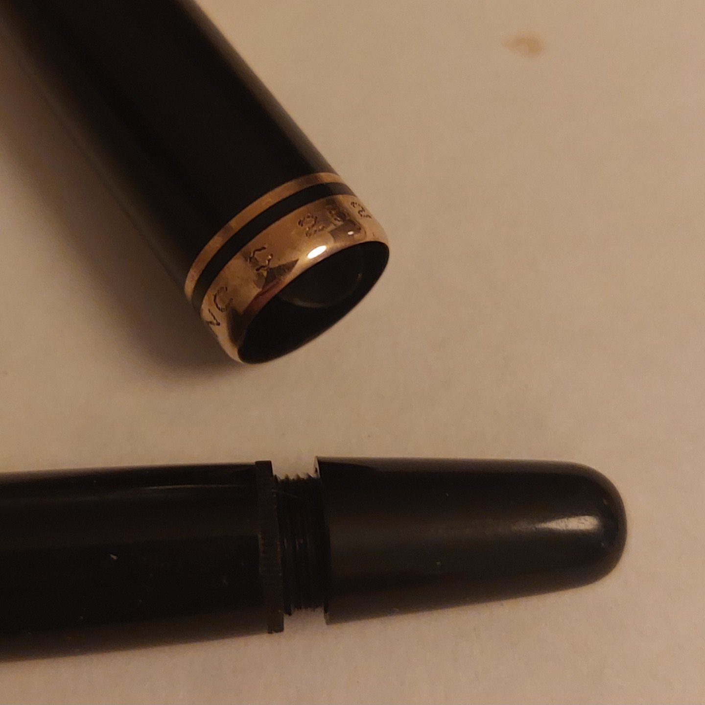 Beskrivelse: Sort Montblanc 252 fyldepen med piston blæk-påfylder. Fremstår I brugbar stand med velfungerende påfyldningsmekanisme. Der mangler en lille sort krave, der sidder på toppen af hætten omkring stjernen. Eller intet at bemærke. Alle dele er originale Montblanc dele fra perioden hvor fyldepennen er produceret. L. 12,5 cm