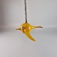 Beskrivelse: Vintage Hoptimist uro model Busy Birdie i gul plast med metal ophæng