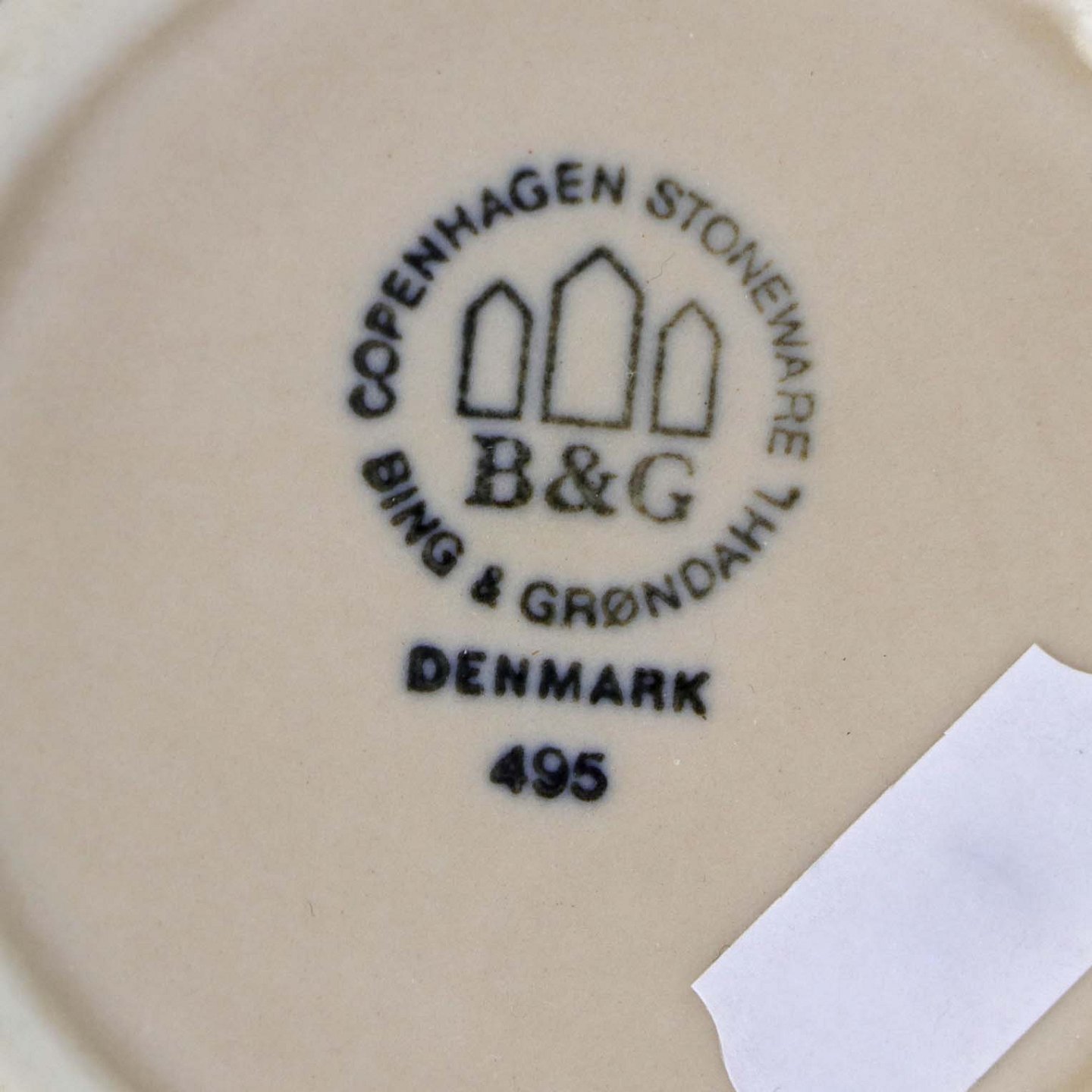 Stellet Peru er af stentøj, glaseret med lys grå farve og dekoreret med bånd af grøn/brunlige farve