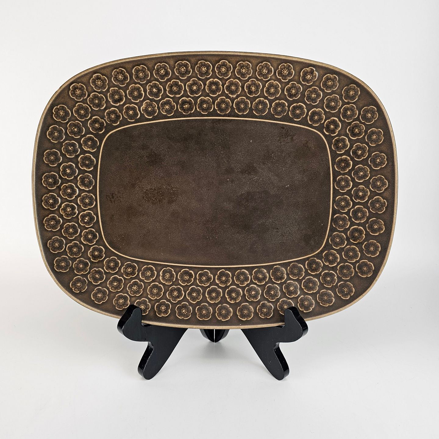 Beskrivelse: Rektangulært fad i stentøj fra stellet Umbra