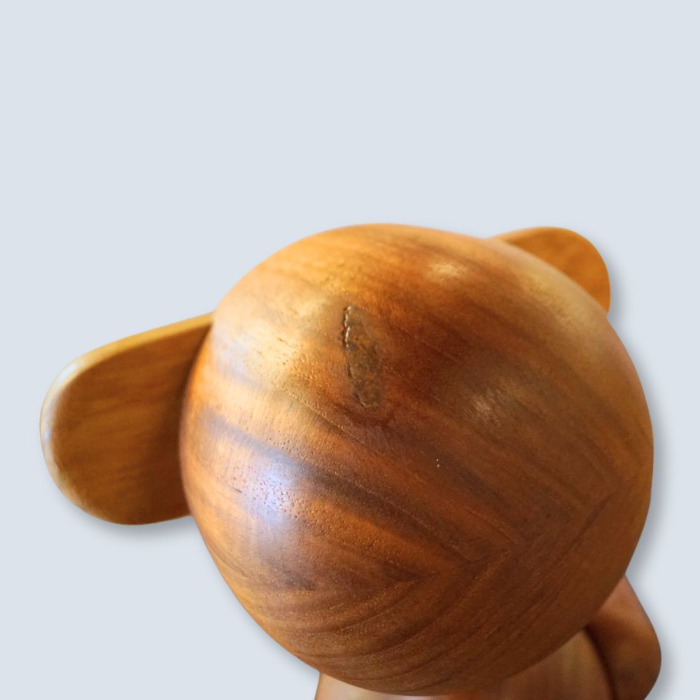 STOR Kay Bojesen abe i teaktræ og limbotræ. Stemplet under bunden "Kay Bojesen Denmark Copyright". Højde siddende 32 cm, udstrakt 60 cm. Designet af Kay Bojesen i 1951. Produceret hos Kay Bojesen Denmark. Standen er pæn og pæn patinering. Der et et par små hak efter leg ved munden og på baghovedet (se ekstra billeder).