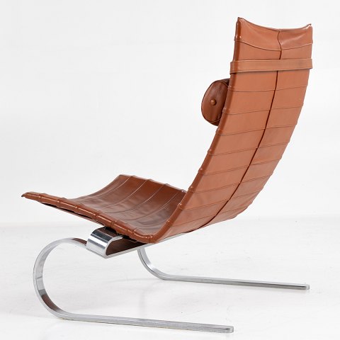 PK 20 - Højrygget frisvinger-lænestol i originalt cognaclæder på stel af stål. Formgivet i 1968. Stemplet fra producent.