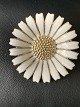 Beskrivelse: Flot klassisk broche med motivet marguerit, der passer til både hverdagen og festlige lejligheder. De mange detaljer gør brochen levende, og anvendelsen af porcelæn til bladene giver smukt skin.