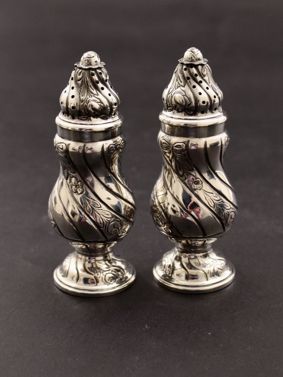 : 830 sølv salt og peber bøsser H 10 cm. emne nr. 588522