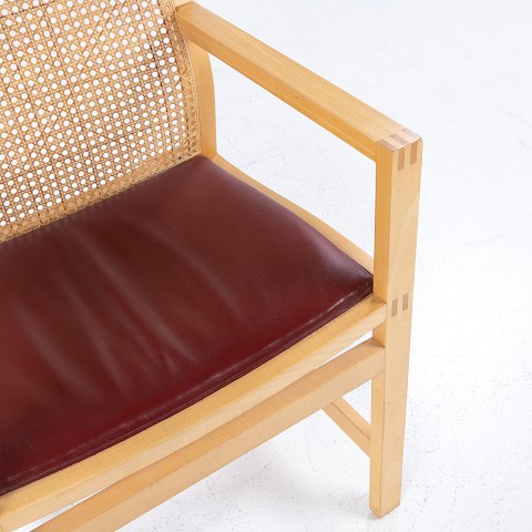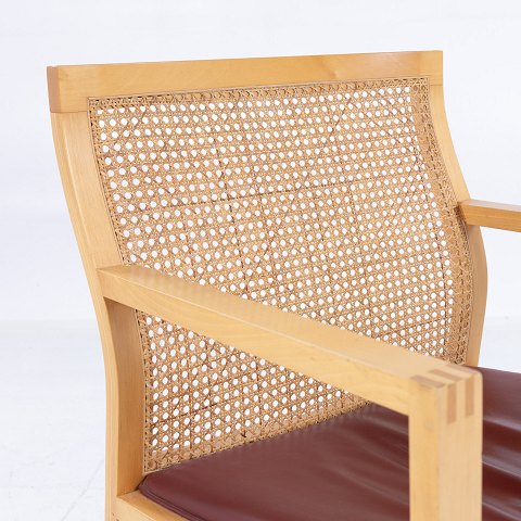 7512 - Armstol fra 'Kongeserien' i ask og patineret rødt læder.