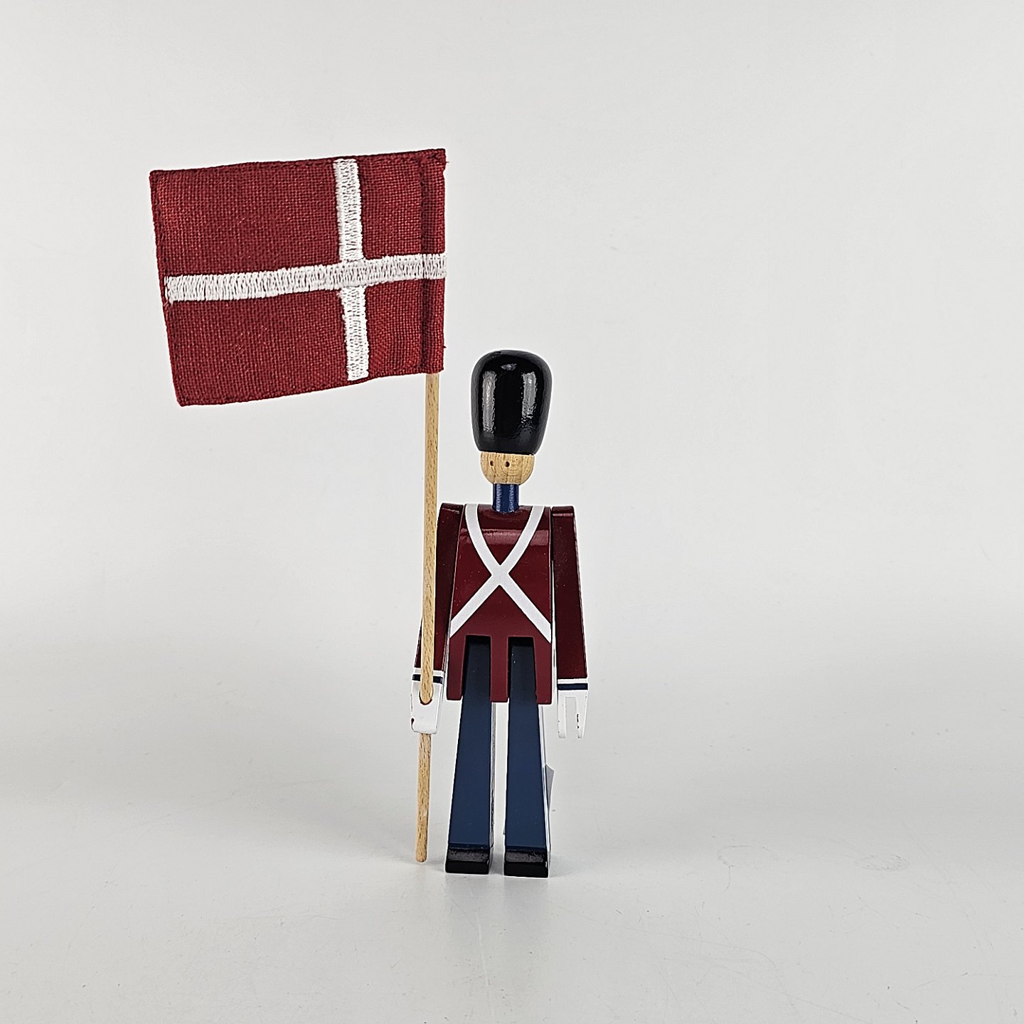 Beskrivelse: Figur i malet træ med motiv af en fanebærer i uniform og med flag