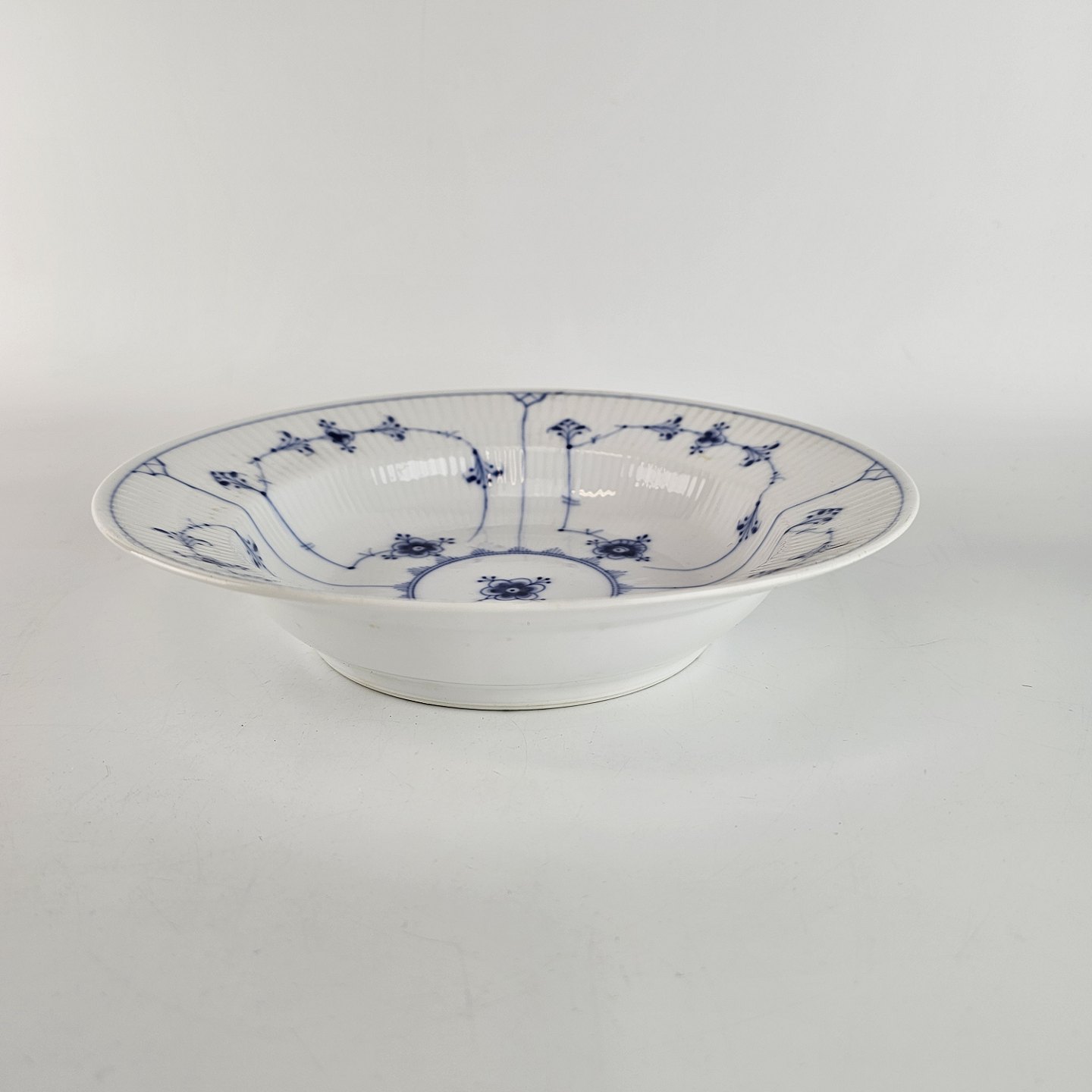 Beskrivelse: Kgl dyb tallerken fra stellet Musselmalet, riflet. Nr 1/167.