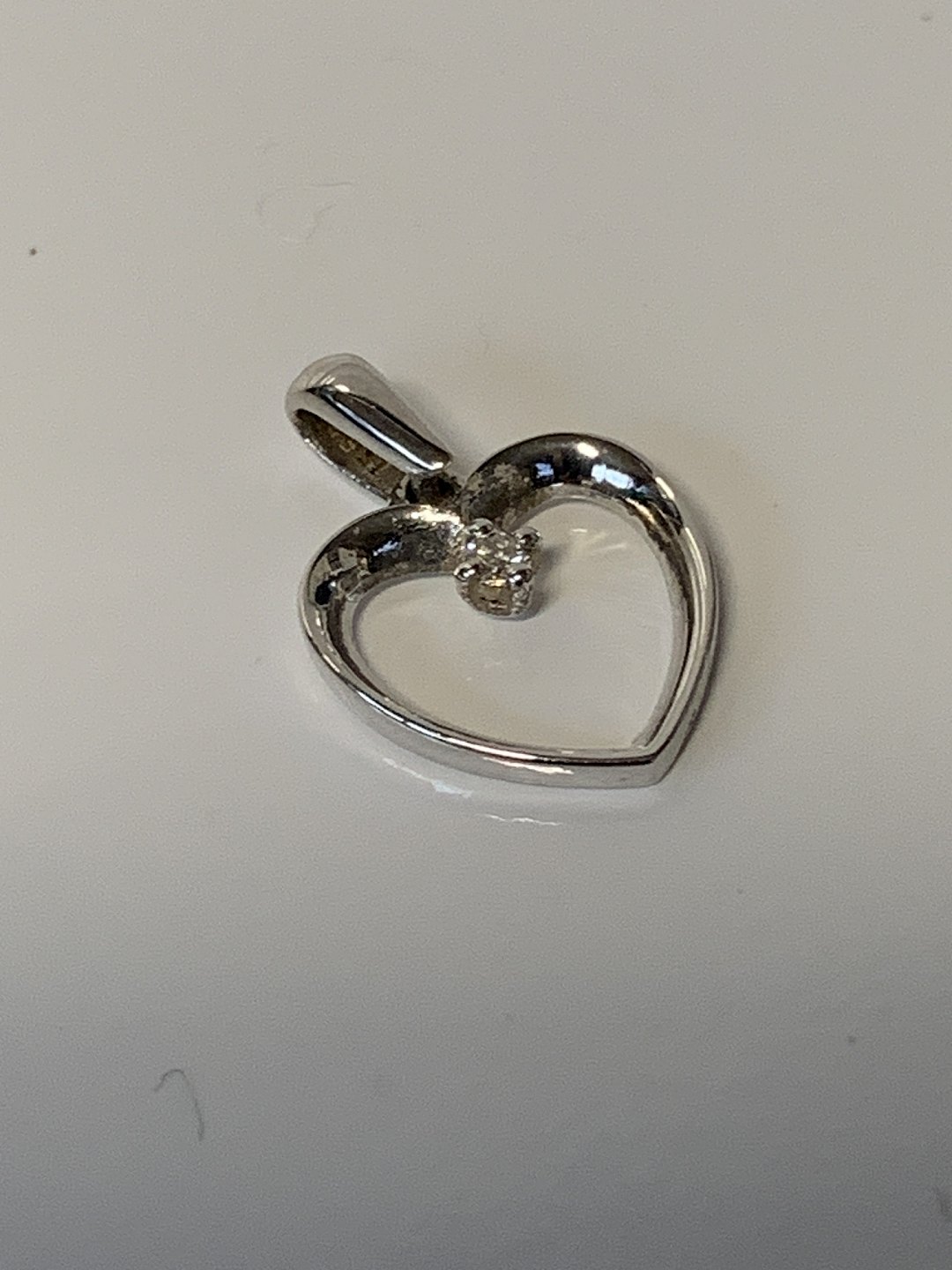 Description: Nice and discreet pendant, shaped like a heart with a diamond in 14 carat white gold. Suitable for a necklace or as a pendant in a bracelet. Beautiful minimalistic and classic piece of jewelry that has been used for many years.