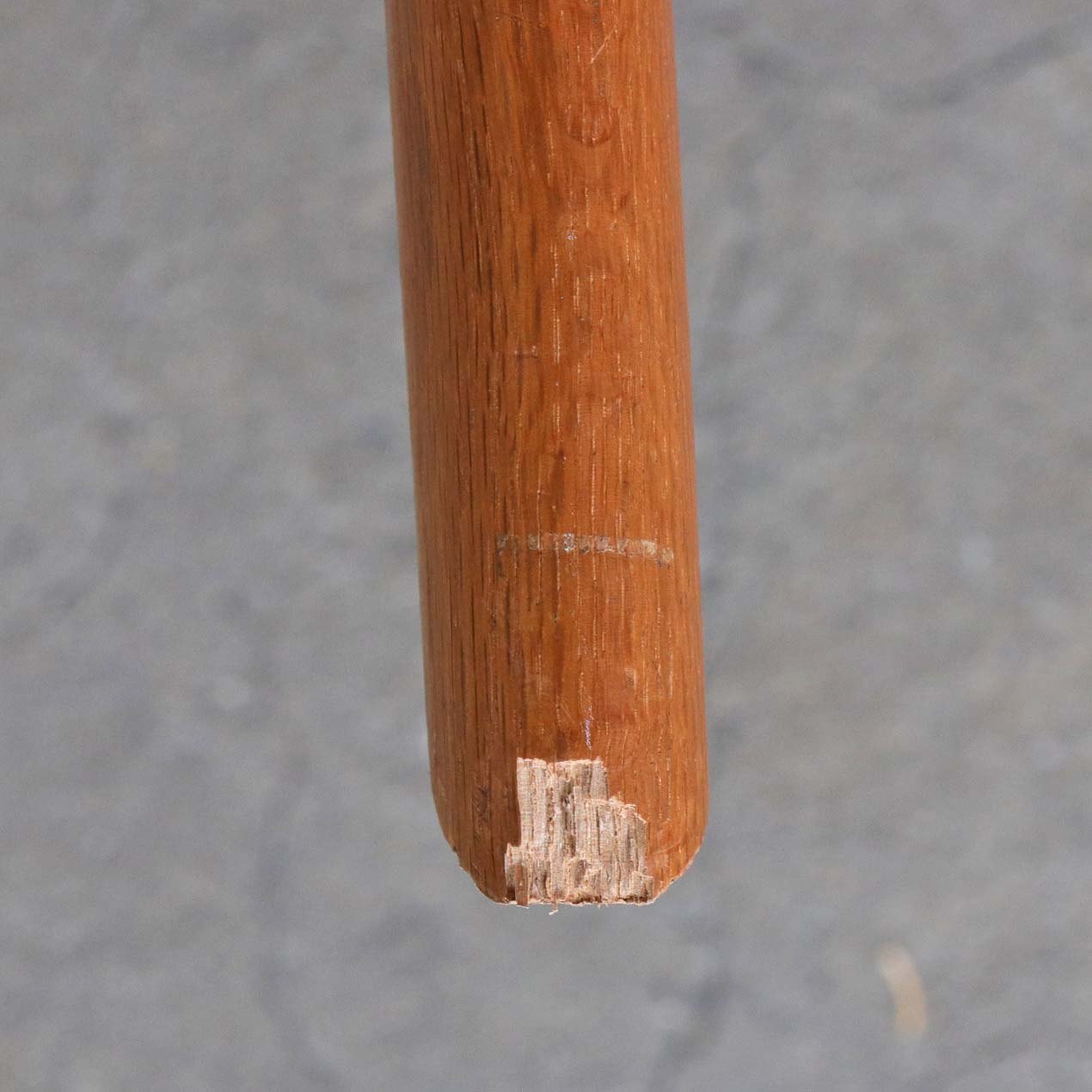 Fremstår med brugsspor på stel og solbleget stof. Trænger til ompolstring.