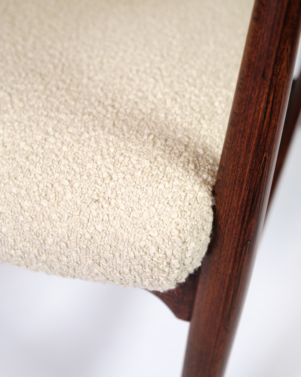 Lænestol - Polstret I Hvidt Uldstof - Mørkt Træ - Ib Madsen & Anton Schubell - Vik & Blindheim - 1950erne