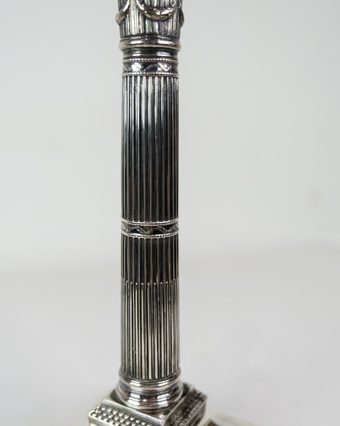 Sæt Af 2 Lysestager - Louis Seize Stil - Sterling Sølv 925 - Dekoreret Med Perlekant - Engelsk - 1920erne