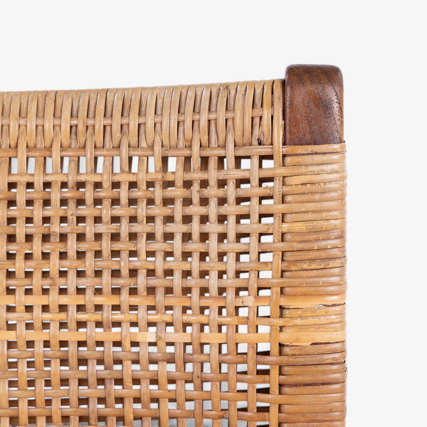 Spisestol i mahogni med sæde og ryg i patineret sjeneflet. Formgivet i 1953.