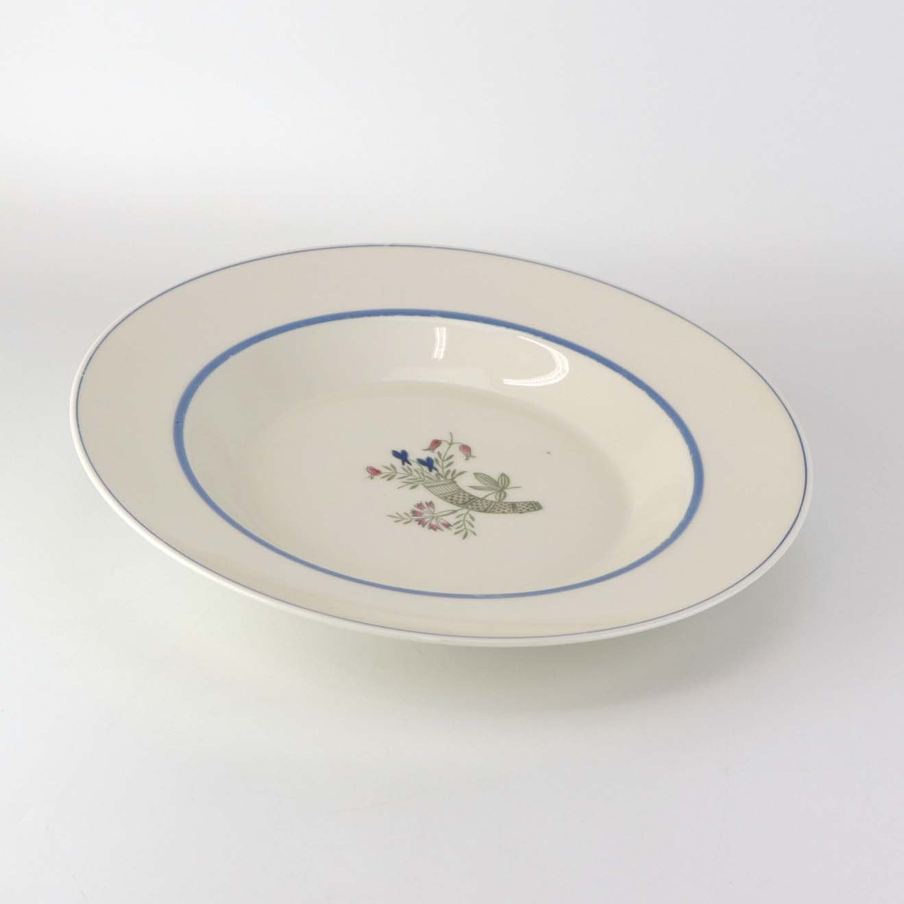 Beskrivelse: Dyb tallerken i kongeligt porcelæn fra stellet Blomsterhorn. Nr. 957/9587