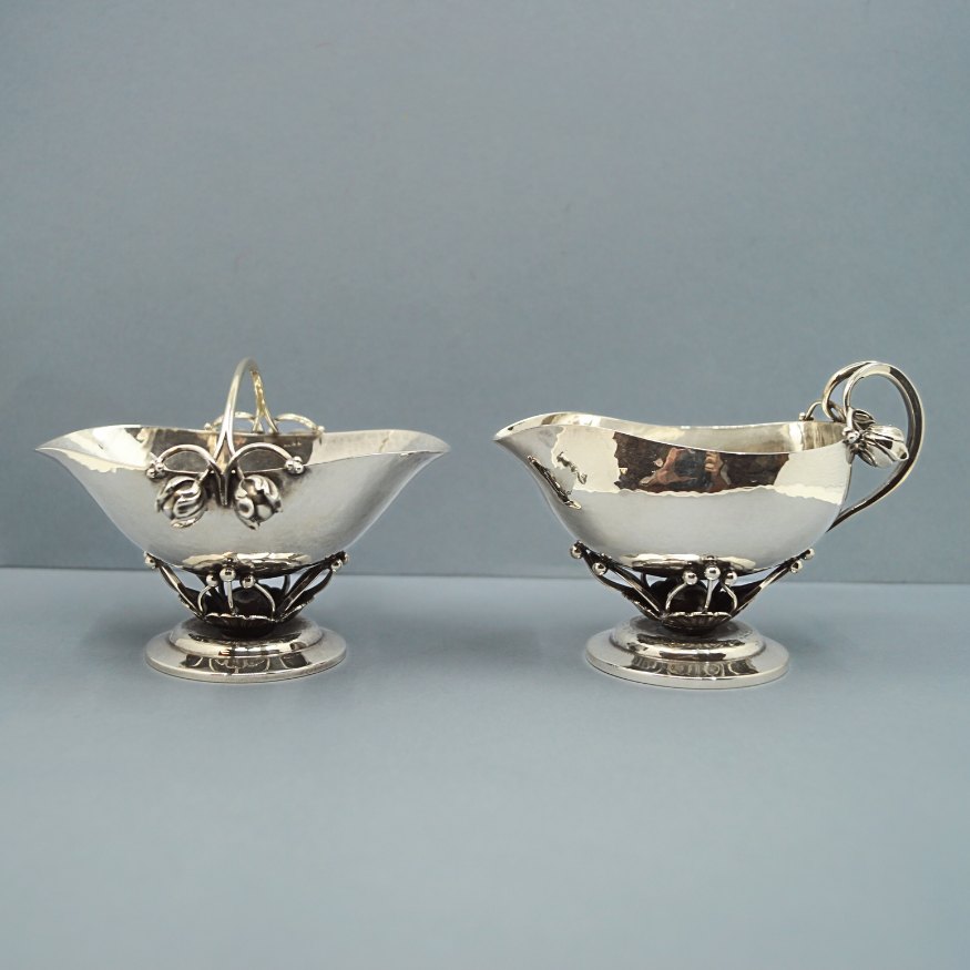 Georg Jensen; A set with sugar bowl and creamer of sterling silver, No 235 A