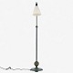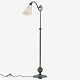 Skulpturel gulvlampe i patineret bronze med højdejustering og hvid stofskærm. Fra 1930.