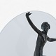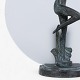 Bordlampe med dansende kvinde i patineret bronze og glasskærm.